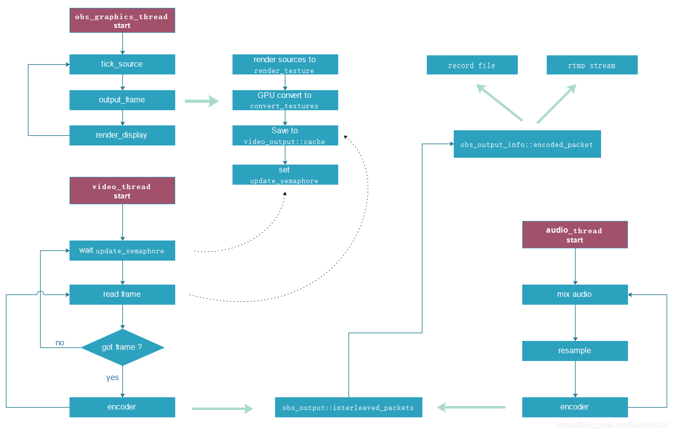 obs_graphics_thread for rendering video libobs/obs-video.c